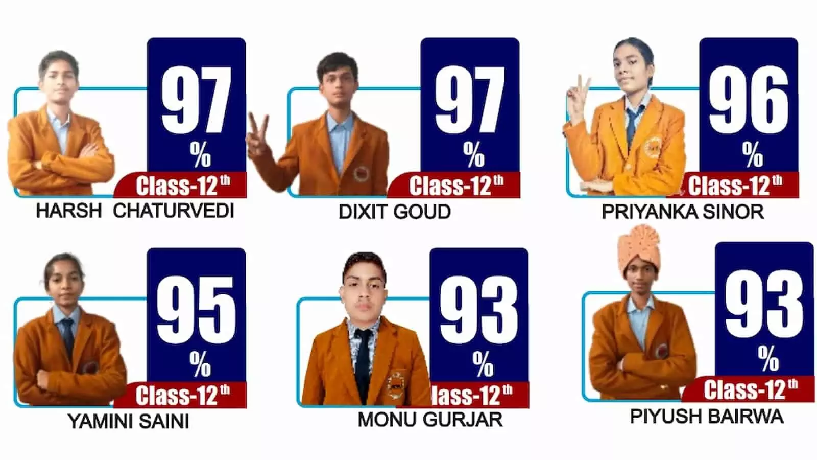 दीक्षित गौड़ ने पीसीबी वर्ग में 99.67% अंक हासिल किए, हर्ष चतुर्वेदी और दीक्षित ने 97% अंकों के साथ विद्यालय का नाम रोशन किया।