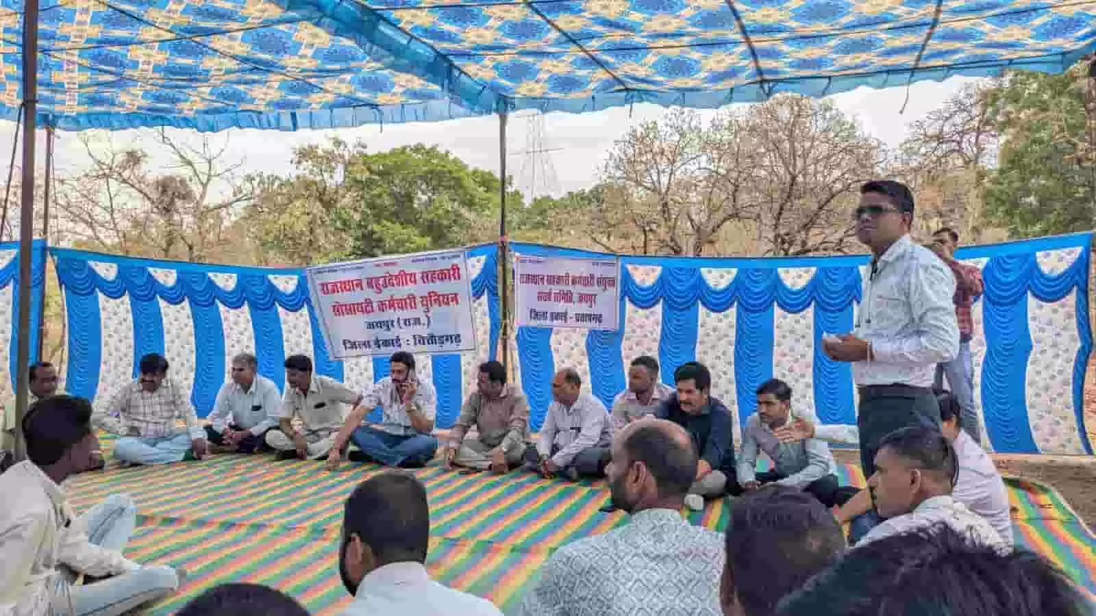प्रतापगढ़, चित्तौड़गढ़ और बांसवाड़ा के सहकारी कर्मचारियों ने रेवड़ा महादेव में बैठक कर नियमितीकरण और कॉमन कैडर की मांग को लेकर कार्य बहिष्कार तेज करने का निर्णय लिया।