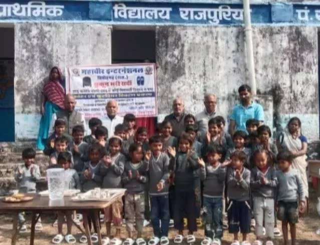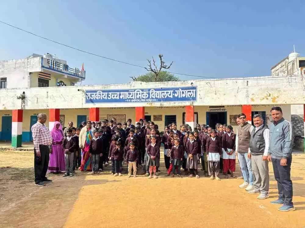 गोगला में जे. बी. ग्रुप की पहल: विद्यार्थियों को सर्दी से बचाने के लिए स्वेटर वितरण