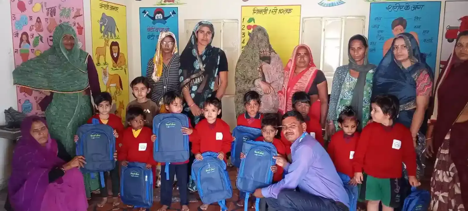 बल्लभगढ नंदघर में बच्चों को स्कूल बैग, जर्सी और पोषण सामग्री का वितरण