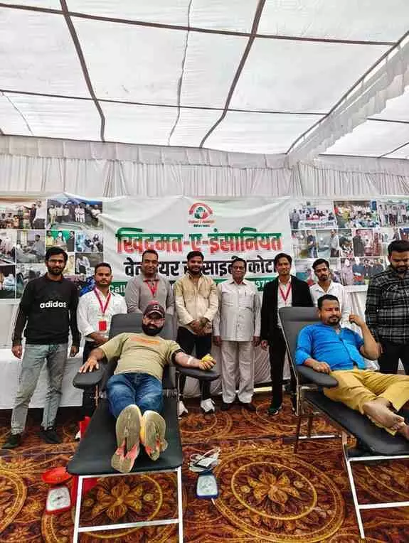 कोटा में खिदमत-ए-इंसानियत वेलफेयर सोसाइटी का रक्तदान शिविर: 67 यूनिट रक्त एकत्रित