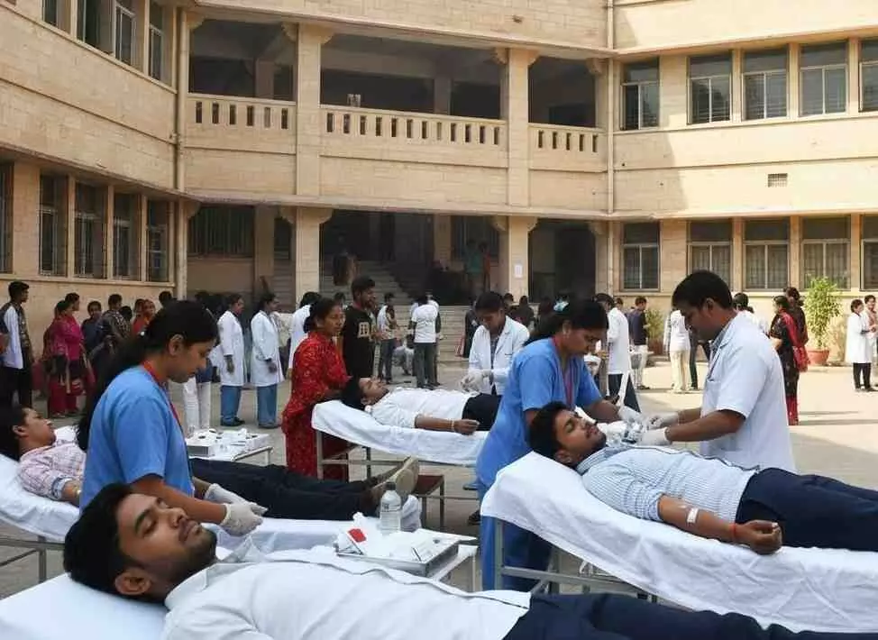 राज्य सरकार के दो वर्ष पूर्ण होने पर नोहर में रक्तदान शिविर का आयोजन, औषध विक्रेता संघ की मानवीय पहल
