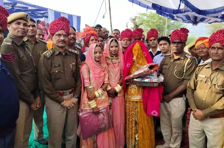 राजसमंद जिले के भीम थाना पुलिस ने लांगरी प्रकाश सिंह रावत की बेटी की शादी में भात भरकर इंसानियत और करुणा की मिसाल पेश की। पुलिसकर्मियों ने नकद राशि और कपड़े भेंट किए और डीजे की धुन पर रस्म में भाग लेकर ग्रामीणों का दिल जीत लिया, जिससे समाज में भरोसे और सहयोग की भावना प्रबल हुई।