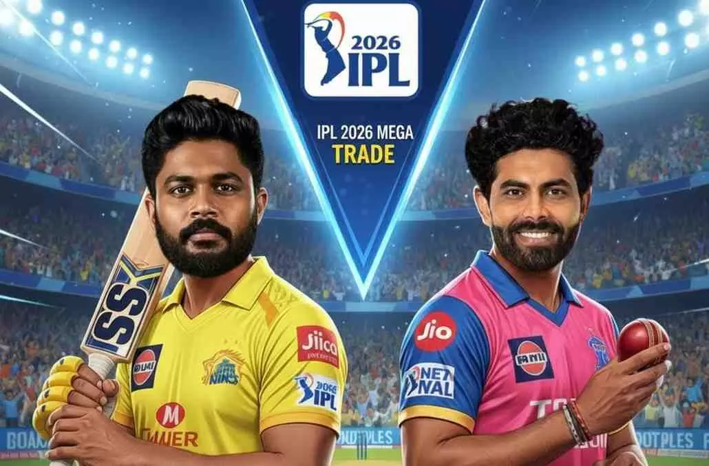 आईपीएल 2026 में बड़ा ट्रेड: संजू सैमसन 18 करोड़ में चेन्नई सुपर किंग्स में शामिल, रवींद्र जडेजा RR में लौटे लेकिन उनकी फीस घटकर 14 करोड़ हुई। सैम कर्रन भी CSK से RR में 2.4 करोड़ में शामिल। फ्रेंचाइजियों की रिटेंशन और रिलीज लिस्ट के बाद मिनी ऑक्शन की तैयारियां शुरू।