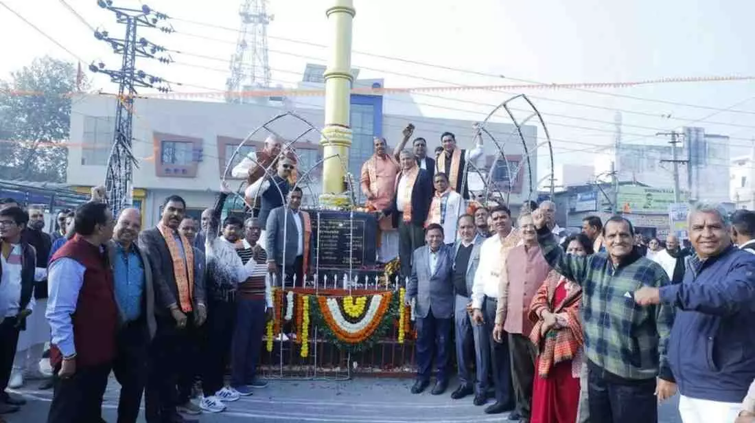 भीलवाड़ा: महेश सर्किल पर 36 फीट ऊंचे महेश त्रिशूल का विधिवत लोकार्पण