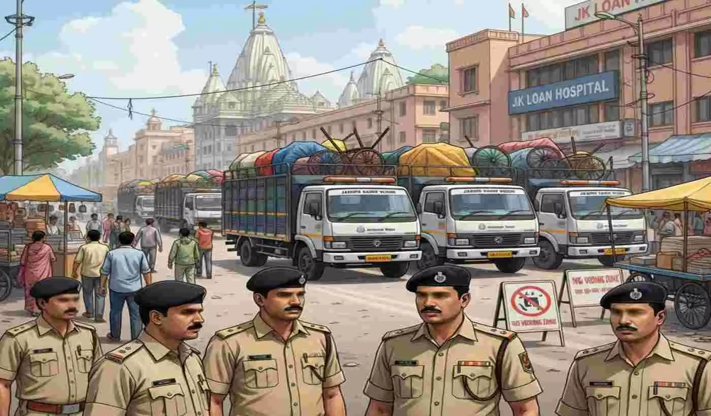 जयपुर नगर निगम सतर्कता शाखा ने डॉ. गौरव सैनी और उपायुक्त सतर्कता के नेतृत्व में मोती डुगरी तख्ते शाही रोंड, बिरला मंदिर और जे.के लोन हास्पिटल के पास अस्थाई अतिक्रमण हटाते हुए 7 केन्टर सामान जब्त किया। यह कार्रवाई अवैध अतिक्रमण रोकने और सार्वजनिक स्थान सुरक्षित रखने के लिए की गई।