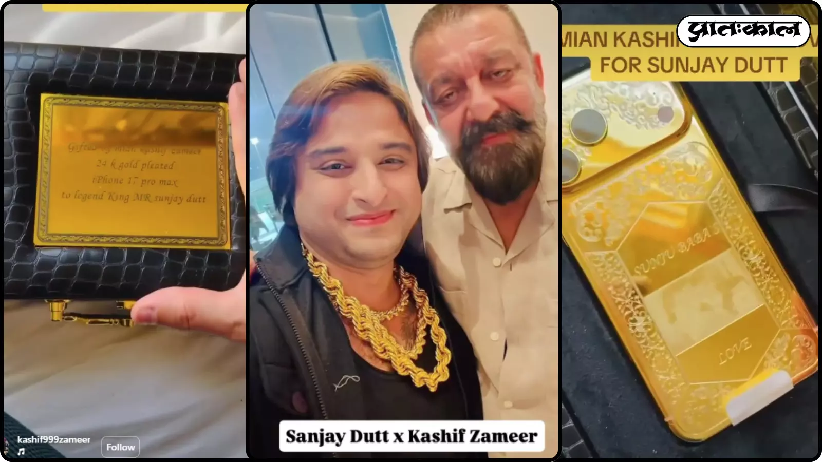 दुबई में बॉलीवुड अभिनेता संजय दत्त को पाकिस्तानी सोशल मीडिया इंफ्लुएंसर काशिफ जमी़र ने कस्टम गोल्ड-प्लेटेड आईफोन 17 भेंट किया। यह लग्ज़री तोहफा उनकी फिल्म “धुरंधर: द रिवेंज” की रिलीज़ से पहले चर्चा में आया और सोशल मीडिया पर वायरल वीडियो के साथ सुर्खियां बटोर रहा है।