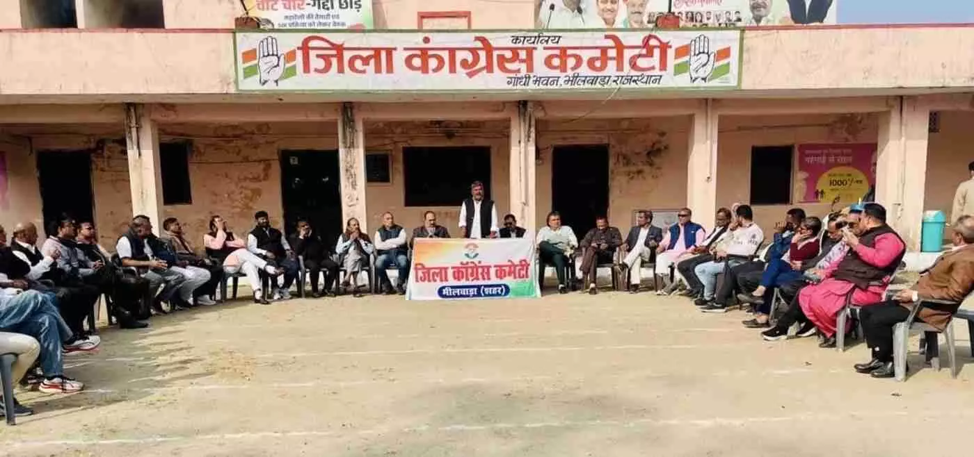 भीलवाड़ा देहात कांग्रेस ने केंद्र सरकार द्वारा मनरेगा में किए गए बदलावों के विरोध में प्रेस वार्ता कर आंदोलन का बिगुल फूंका। जिला अध्यक्ष रामलाल जाट ने मनरेगा को कमजोर करने और पंचायतों के अधिकार छीनने का आरोप लगाते हुए न्यूनतम मजदूरी 400 रुपये करने की मांग की। जिले के वरिष्ठ नेताओं की उपस्थिति में कांग्रेस ने ग्रामीण आजीविका की रक्षा हेतु ग्राम स्तर तक जन-जागरूकता अभियान चलाने का संकल्प लिया।