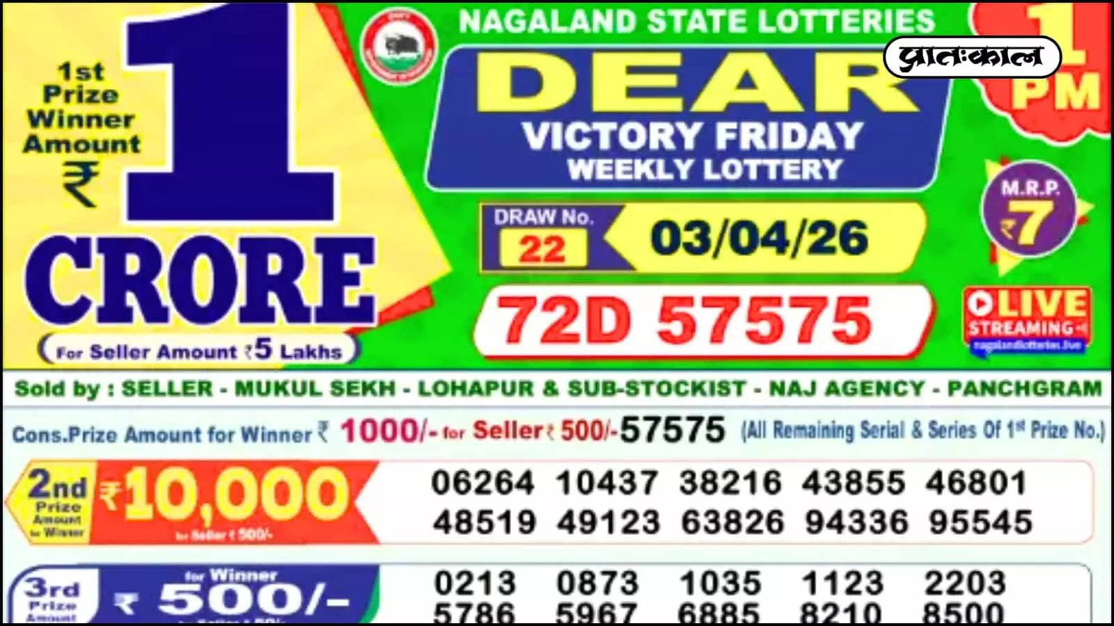 Singam Cliff Result 2 अप्रैल 2026 के नतीजे घोषित: टिकट संख्या 93A 65277 ने जीता ₹26.03 लाख का प्रथम पुरस्कार। देखें विजेताओं की पूरी सूची और इनामों का विवरण।