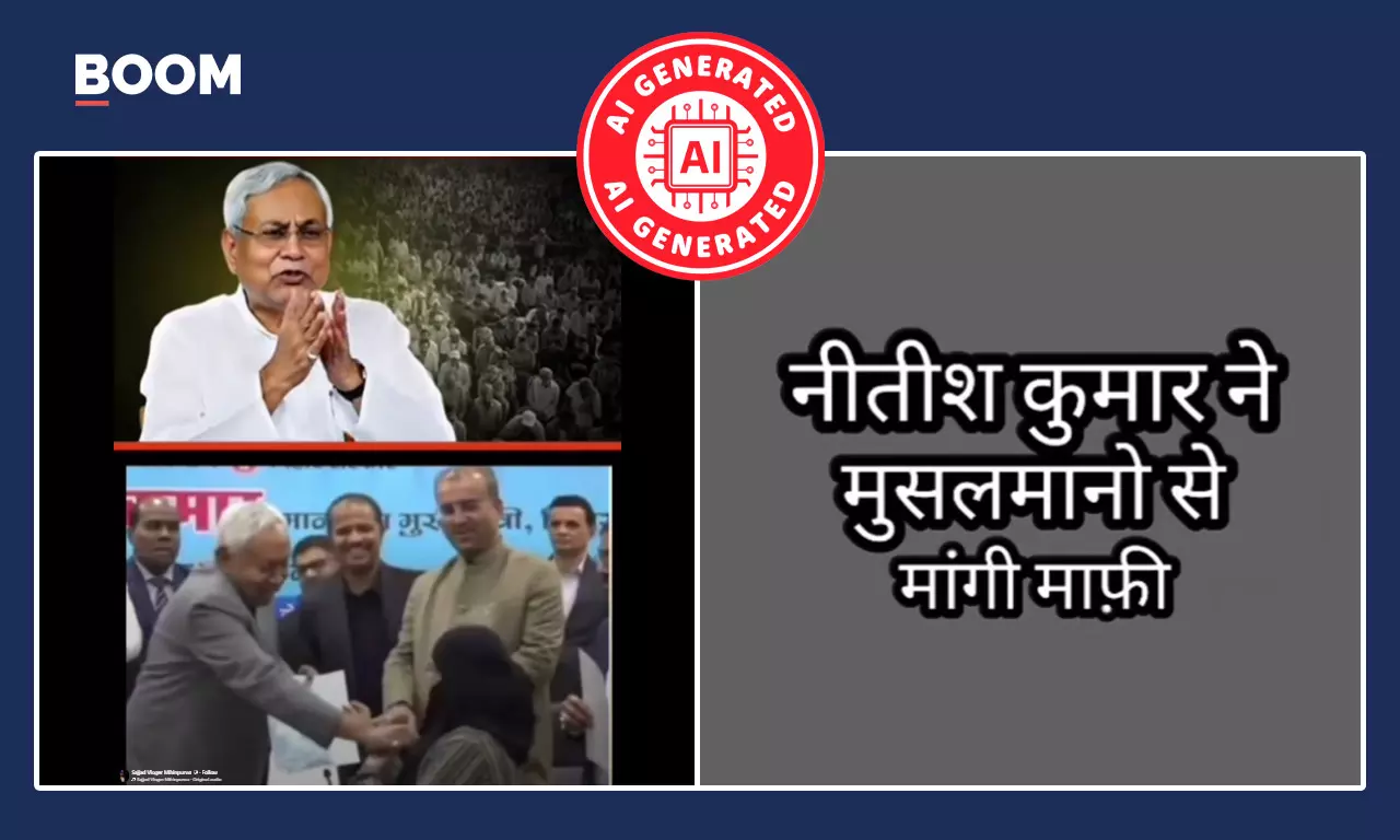 बूम ने पाया कि मुस्लिम समुदाय से माफी मांगते नीतीश कुमार का वायरल वीडियो एआई की मदद से निर्मित किया गया है.