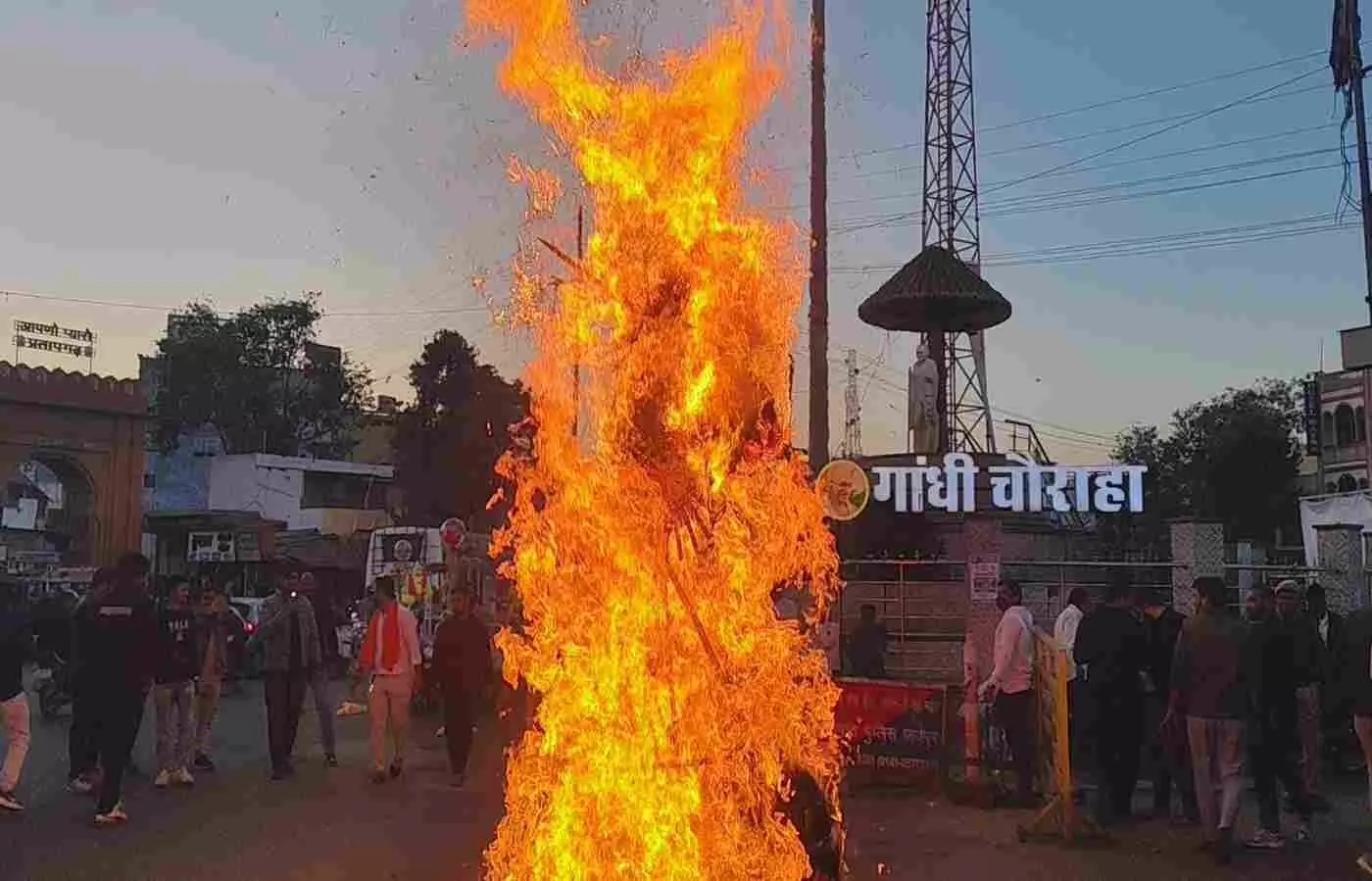 डीग में विहिप–बजरंग दल का विरोध प्रदर्शन, बांग्लादेश में हिंदुओं पर कथित अत्याचार के खिलाफ पुतला दहन