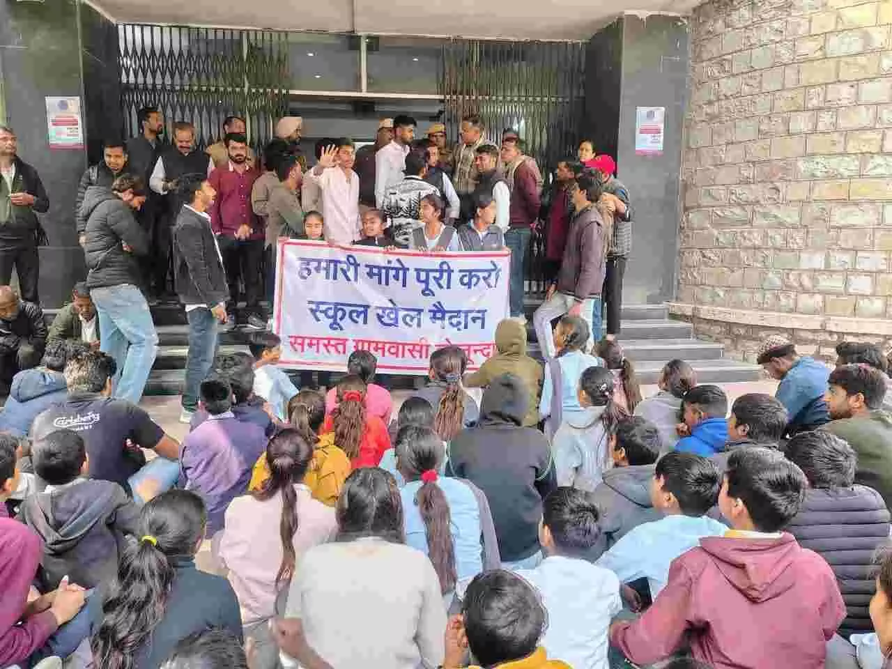 चित्तौड़गढ़: बोजुंदा में खेल मैदान की मांग को लेकर ग्रामीणों का प्रदर्शन