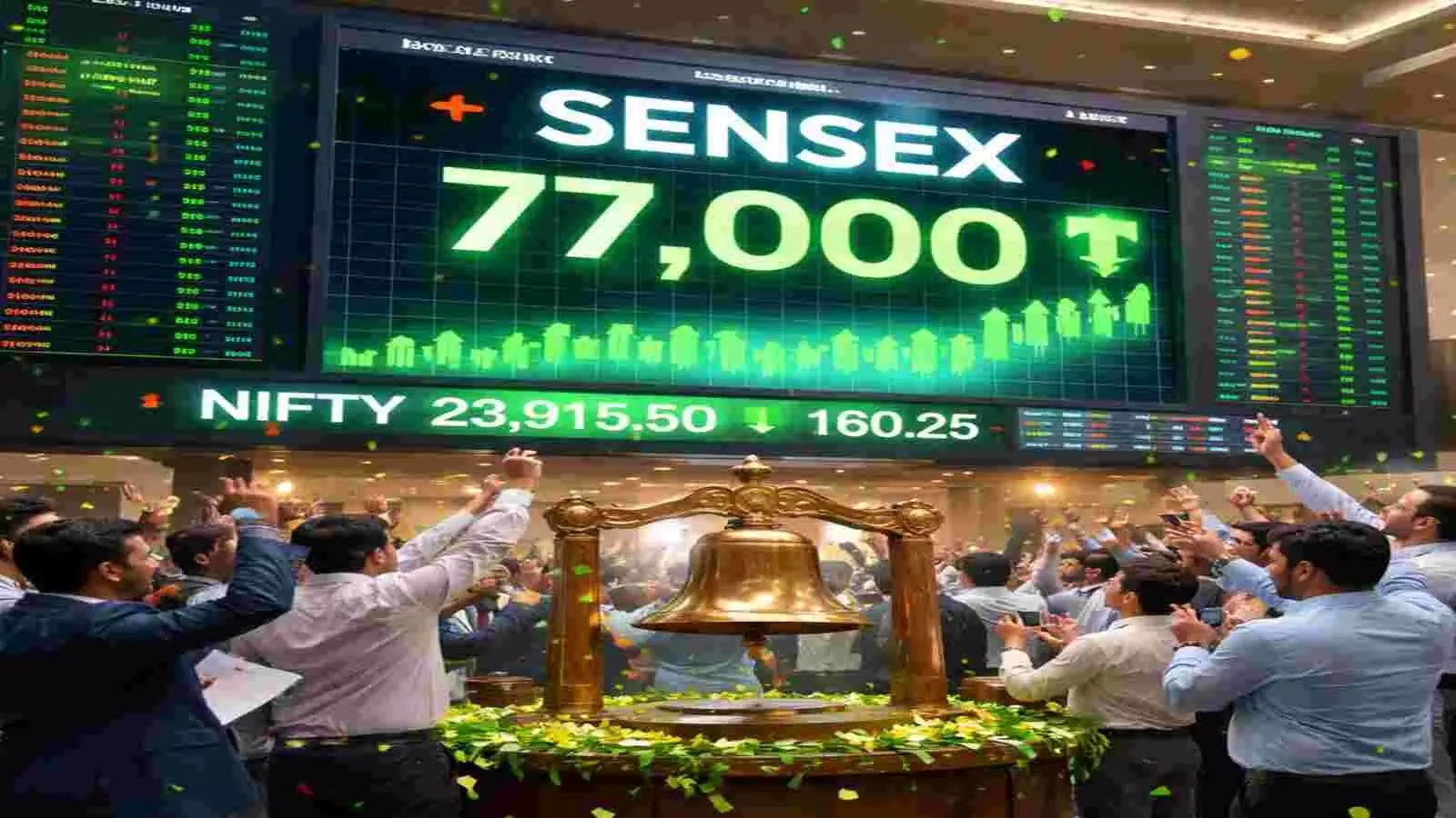 सेंसेक्स ९१८ अंक उछलकर ७७,५५० के पार, निफ्टी में भी बंपर रिकवरी। जानें पश्चिम एशिया के तनाव के बीच भारतीय शेयर बाजार में आई इस तूफानी तेजी के पीछे के मुख्य कारण।