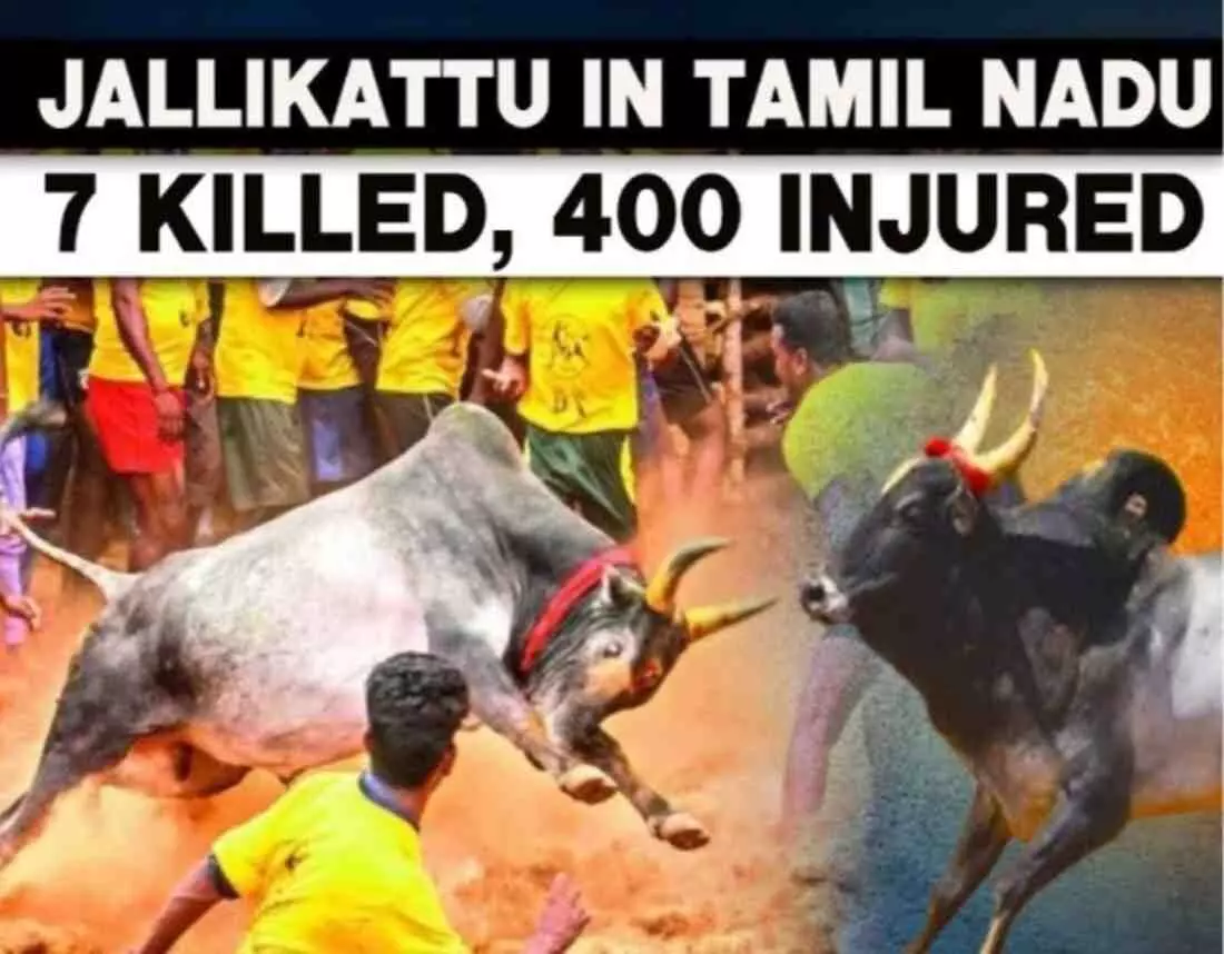 तमिलनाडु के शिवगंगा में जल्लीकट्टू आयोजन के दौरान मची अफरा-तफरी, खूंखार सांडों के हमले में 40 से अधिक लोग गंभीर रूप से घायल। परंपरा और रोमांच के बीच लहूलुहान हुआ खेल का मैदान। अस्पताल में भर्ती घायलों की स्थिति नाजुक, प्रशासन की सुरक्षा व्यवस्था पर उठे गंभीर सवाल। जानिए शिवगंगा से ग्राउंड रिपोर्ट।