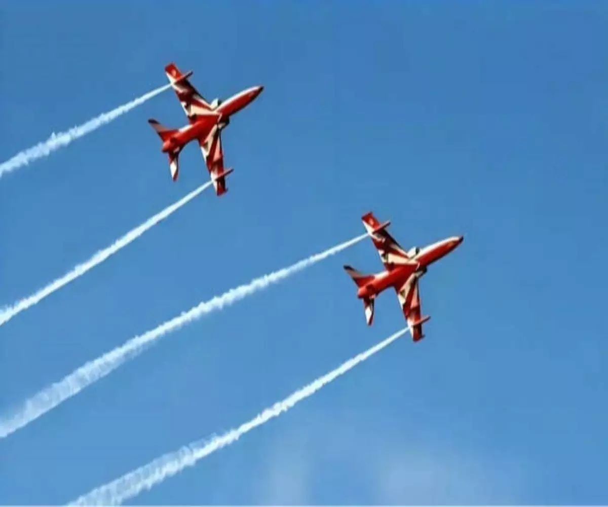पाकिस्तान बॉर्डर से मात्र 260 किलोमीटर दूर चंडीगढ़ की सुखना झील पर भारतीय वायुसेना की 'सूर्य किरण' टीम ने हॉक एमके-132 जेट विमानों के साथ शानदार हवाई प्रदर्शन किया। राज्यपाल और मुख्यमंत्री की मौजूदगी में हुए इस एयरशो में लूप, बैरल रोल और इनवर्टेड फ्लाइंग जैसे रोमांचक करतब दिखाए गए।