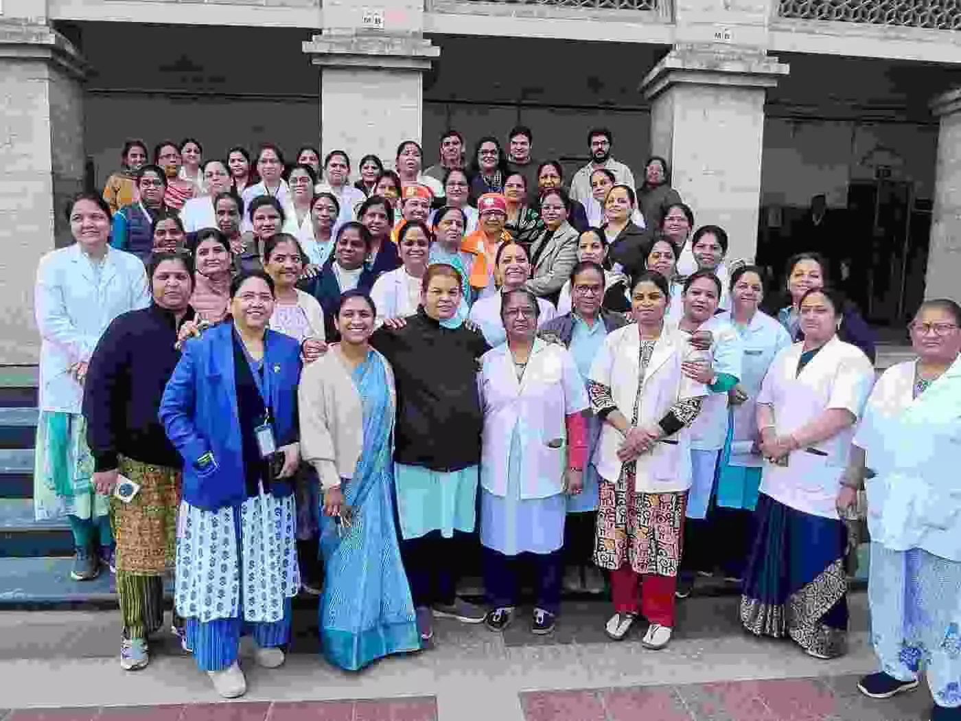 एमबी हॉस्पिटल उदयपुर में नवनियुक्त मुख्य नर्सिंग अधीक्षक नूरानी मेइडा और श्रीदेवी एम का नर्सेज एसोसिएशन ने पारंपरिक तरीके से अभिनंदन किया।