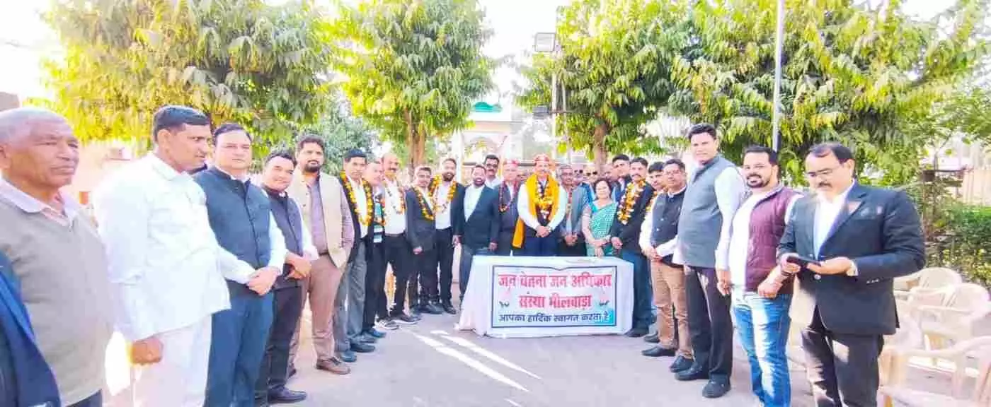 भीलवाड़ा में जन चेतना जन अधिकार संस्था ने जिला अभिभाषक संस्था के नवनिर्वाचित अध्यक्ष उम्मेद सिंह राठौड़ और सेवा दल के राष्ट्रीय समन्वयक शिवकुमार कौशिक का भव्य स्वागत-सम्मान किया। कार्यक्रम में विधिक और सामाजिक क्षेत्र के गणमान्य व्यक्तियों ने उनकी सेवाओं की सराहना की।