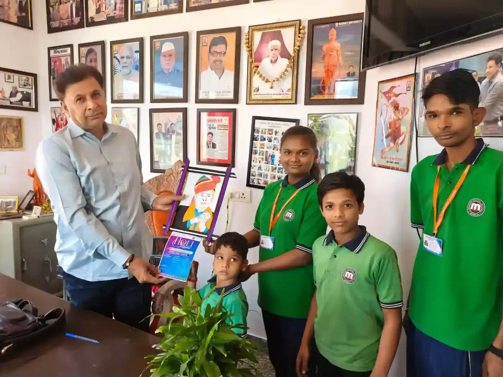 विशेष विद्यालय के विद्यार्थियों ने चेयरमैन डॉ. राजकुमार को स्वनिर्मित चित्रकला भेंट की और आगामी होली मिलन समारोह के लिए सादर आमंत्रित किया।
