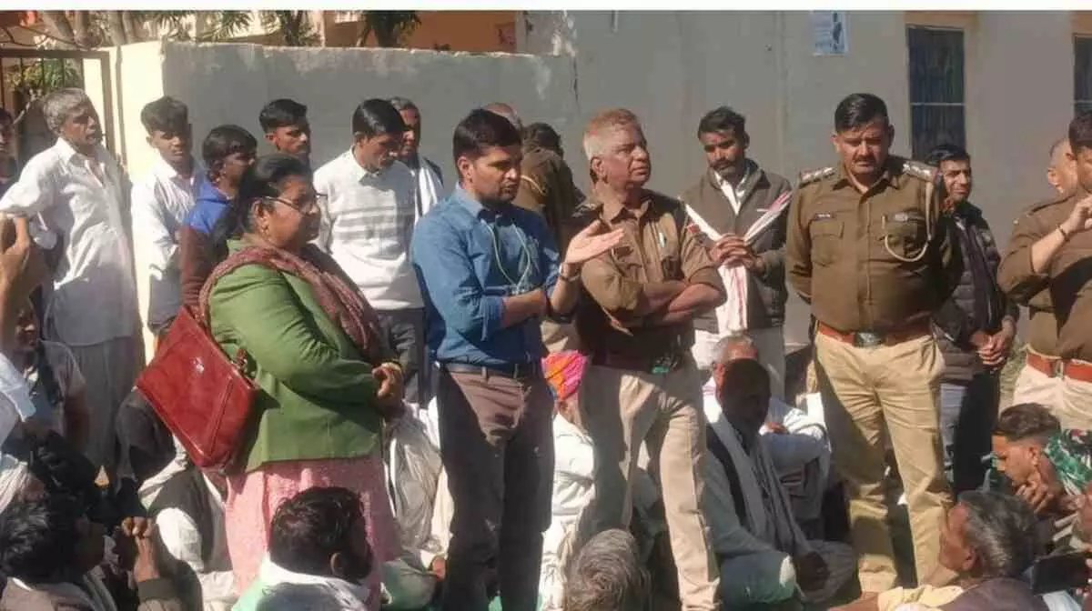 माधोराजपुरा के चांदमाकला में आयोजित शिविर में कृषक सीताराम का आवेदन स्वीकार, बेसहारा पशुओं से फसल सुरक्षा के लिए मिली तारबंदी की सौगात।