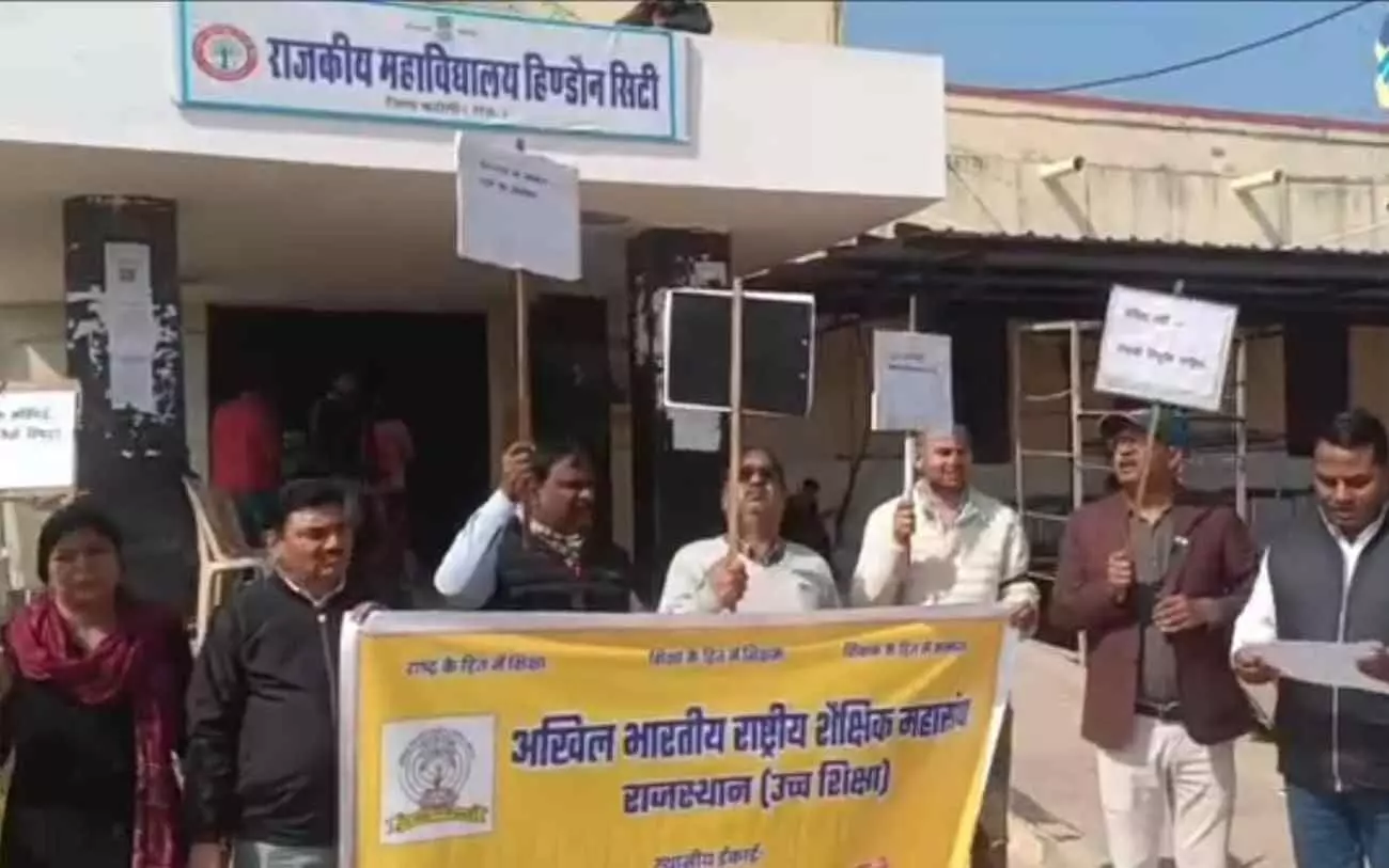 महाविद्यालयों में संविदा नियुक्तियों के विरोध में हिंडौन सिटी में प्रदर्शन
