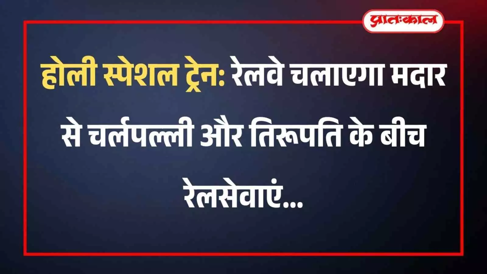 होली स्पेशल ट्रेन: रेलवे चलाएगा मदार से चर्लपल्ली और तिरूपति के बीच रेलसेवाएं