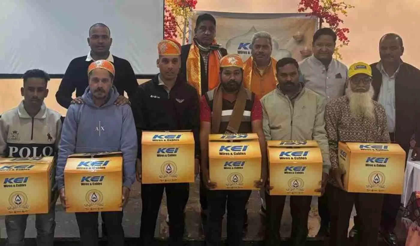 भीलवाड़ा: केईआई कंपनी ने सीएसआर के तहत हेलमेट बांटे और इलेक्ट्रीशियन का किया सम्मान