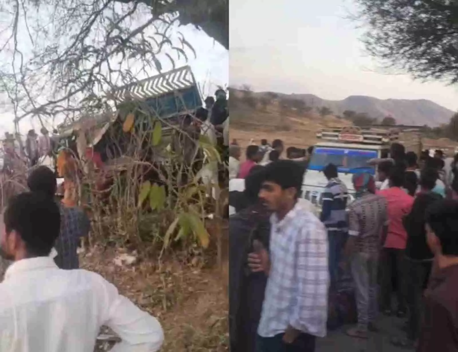 मजावद में अनियंत्रित पिकअप पेड़ से टकराई, एक बच्चे की मौत और 20 घायल