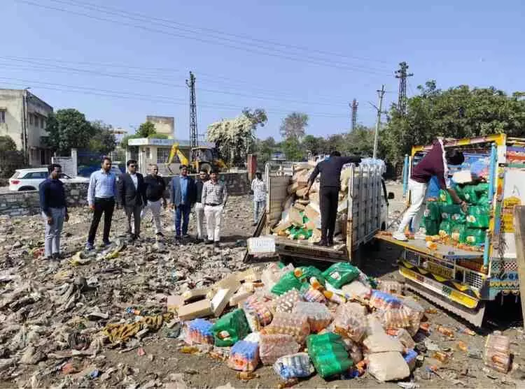 शुद्ध आहार मिलावट परिवार अभियान के तहत खाद्य सुरक्षा दल ने पेप्सी के गोदाम से भारी मात्रा में एक्सपायर्ड जूस और ड्रिंक्स जप्त कर डंपिंग यार्ड में नष्ट किए।