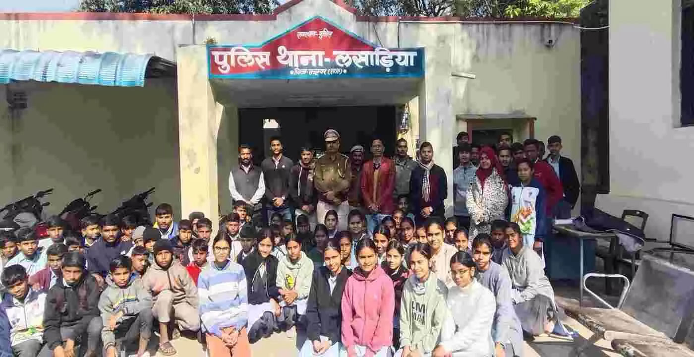 सलूंबर जिले के लसाडिया में विवेकानंद जयंती पर महात्मा गांधी राजकीय विद्यालय के बच्चों ने पुलिस थाने का भ्रमण किया। सीआई भरत सिंह राजपुरोहित ने छात्रों को मोटर व्हीकल एक्ट और पॉस्को एक्ट की विस्तृत जानकारी दी। उप प्रधानाचार्य राकेश बिश्नोई और एसपीसी प्रभारी प्रहलाद कुमार मीणा की उपस्थिति में हुए इस आयोजन का उद्देश्य युवाओं को कानून के प्रति जागरूक करना और पुलिस कार्यप्रणाली समझाना था।