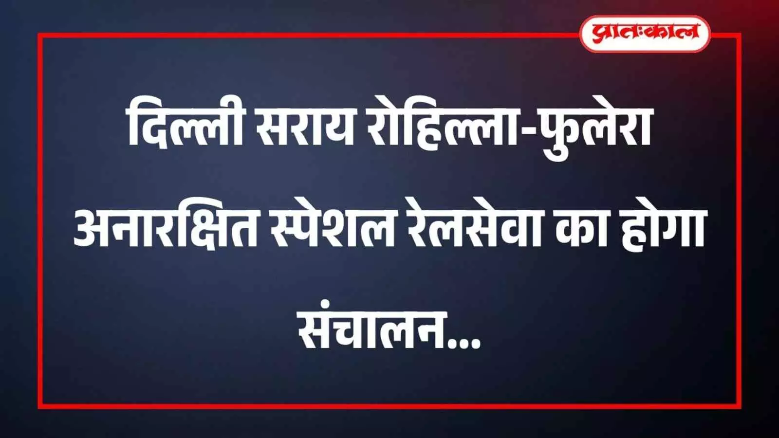 दिल्ली सराय रोहिल्ला-फुलेरा अनारक्षित स्पेशल रेलसेवा का होगा संचालन