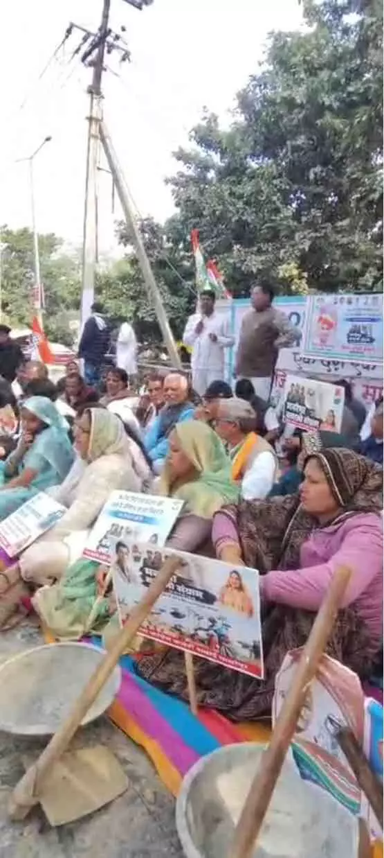 मनरेगा को खत्म करने के विरोध में कांग्रेस ने दिया धरना