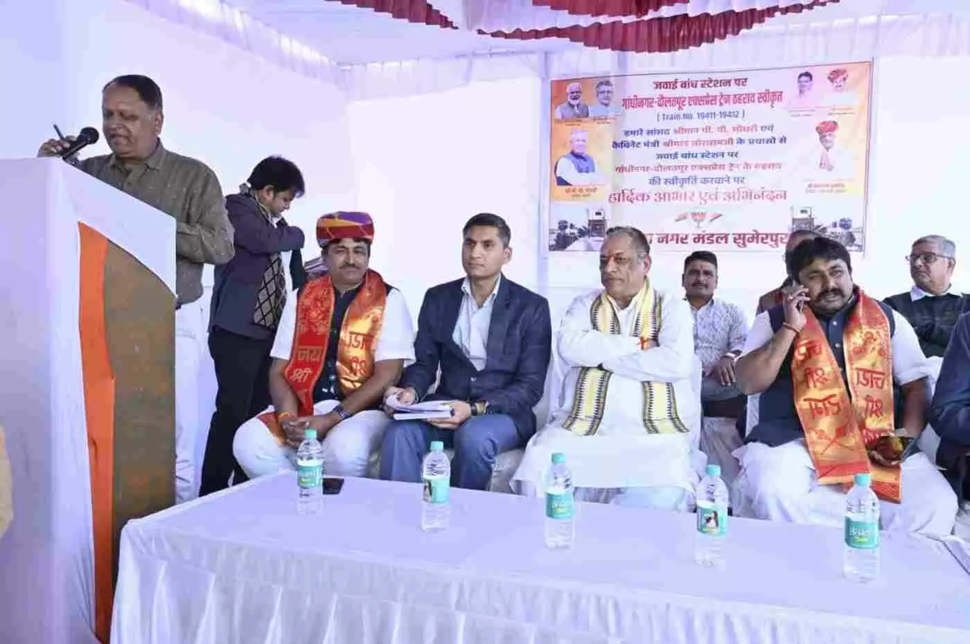 भीलवाड़ा के भीमगंज मोदी ग्राउंड पर जेएसआर एकेडमी द्वारा अभिभाषक संघ के नवनिर्वाचित अध्यक्ष उम्मेद सिंह राठौड़ और नेशनल नेटबॉल गोल्ड मेडलिस्ट प्रिंस सुवालका का भव्य स्वागत किया गया। भाजपा जिलाध्यक्ष प्रशांत मेवाड़ा सहित कई गणमान्य नागरिकों की मौजूदगी में ढोल-नगाड़ों के साथ हुए इस अभिनंदन समारोह ने शहर में उत्साह का संचार कर दिया है।