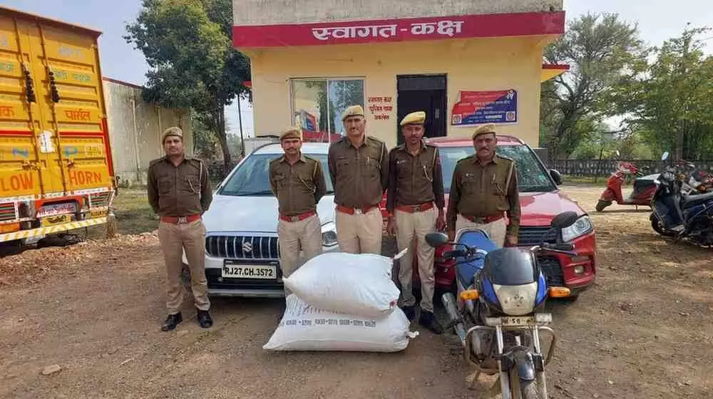 झालावाड़: अकलेरा में 32 किलो डोडा चूरा बरामद, दो कार और एक बाइक जब्त