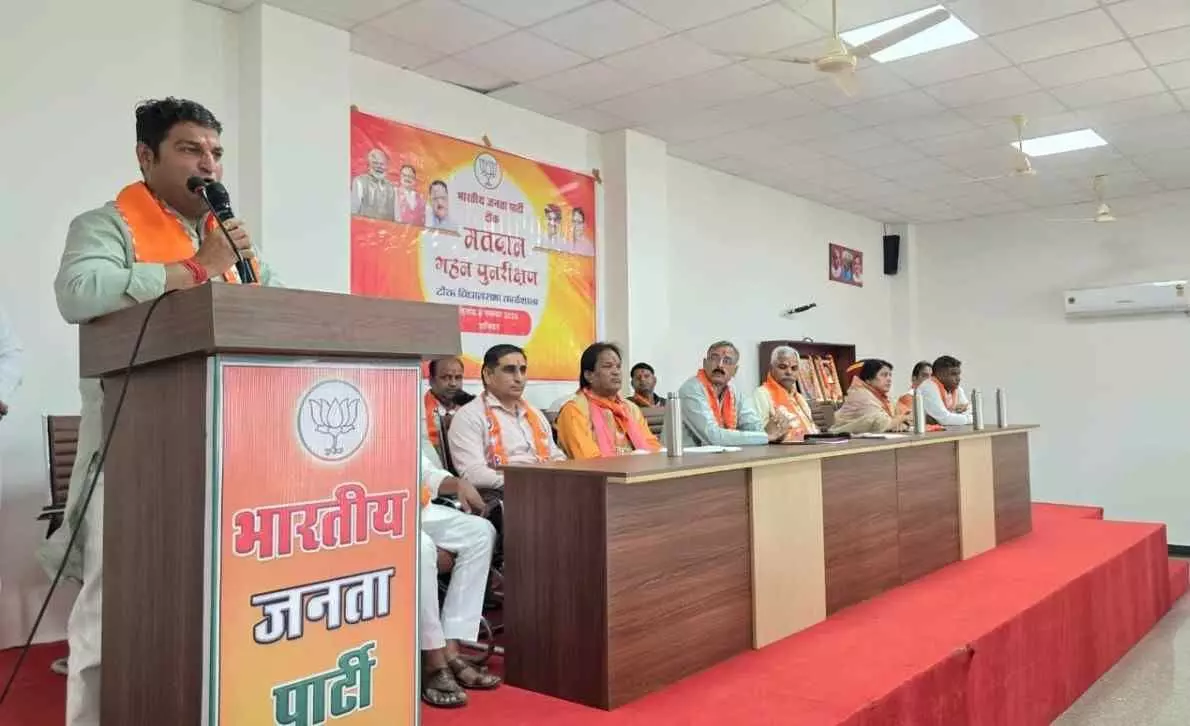 टोंक में भाजपा ने विशेष गहन पुनरीक्षण (एसआईआर) अभियान को लेकर कार्यशाला आयोजित की। जिलाध्यक्ष चंद्रवीर सिंह चौहान और पूर्व जिलाध्यक्ष सतीश चंदेल ने बूथ स्तर पर बीएलओ से तालमेल बनाकर मतदाता सूची को शुद्ध और पारदर्शी बनाने का आह्वान किया।