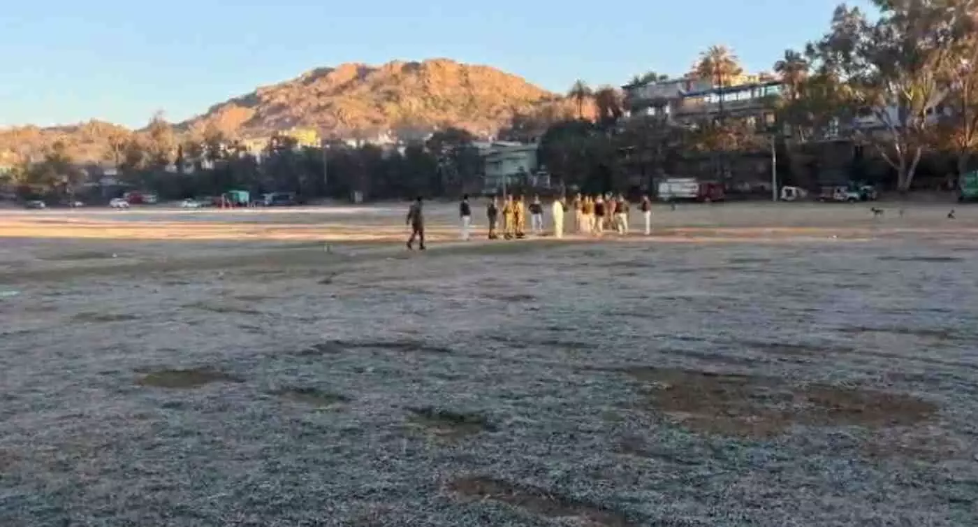 राजस्थान के माउंट आबू में सर्दी का प्रचंड प्रहार जारी है, जहां शहर का तापमान -5 और गुरु शिखर पर पारा -6.2 डिग्री दर्ज किया गया। पोलो ग्राउंड बर्फ की सफेद चादर से ढका नजर आया और गुजरात समेत देशभर से आए पर्यटक इस बर्फीले मंजर का लुत्फ उठा रहे हैं। जानिए कैसे इस कड़ाके की ठंड ने माउंट आबू को बनाया 'राजस्थान का कश्मीर'।