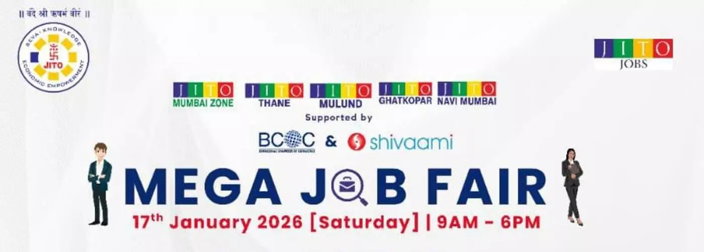 मुंबई के घाटकोपर में 17 जनवरी को 'जितो जॉब्स' द्वारा मेगा जॉब फेयर का आयोजन किया जा रहा है। कमलेश पोखरना के नेतृत्व में आयोजित इस मेले में 60 से अधिक कॉर्पोरेट कंपनियां और 500 से अधिक पदों के लिए अवसर उपलब्ध होंगे। 1,500 उम्मीदवारों की भागीदारी के साथ यह आयोजन युवाओं के करियर को नई उड़ान देने और समावेशी विकास को बढ़ावा देने के लिए एक सशक्त मंच साबित होगा।