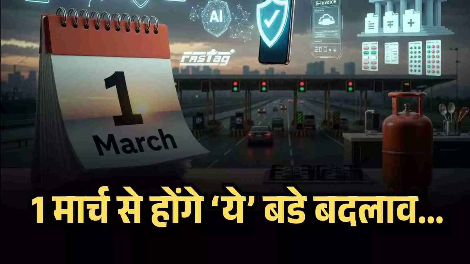 1 मार्च से देश में लागू होने जा रहे हैं 6 बड़े बदलाव जो आपकी जेब और जीवन पर डालेंगे सीधा असर। एलपीजी सिलेंडर की कीमतों से लेकर फास्टैग केवाईसी, सख्त डीपफेक नियम और जीएसटी ई-इनवॉइसिंग के नए प्रावधानों तक, जानें कैसे बदल जाएगा आपकी जिंदगी का गणित। इस विस्तृत रिपोर्ट में पढ़ें हर उस नियम की जानकारी जो कल से आपके लिए अनिवार्य होने जा रही है।