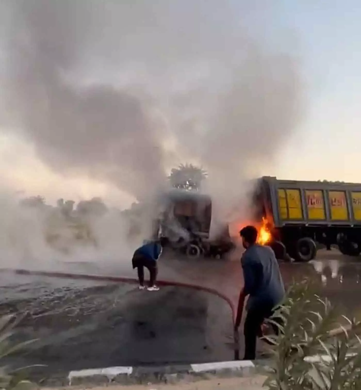 निमाज में मौत की नींद सो रहे ड्राइवर के लिए फरिश्ते बने राहगीर, धू-धू कर जला डंपर