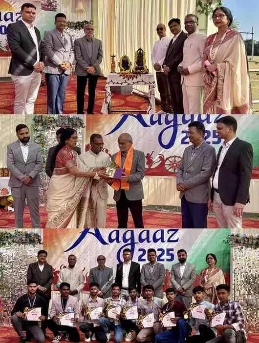 भीलवाड़ा में विद्या प्रोफेशनल व टेक्निकल कॉलेज का एनुअल डे 2025 विधायक अशोक कोठारी की मुख्य आतिथ्य में धूमधाम से संपन्न हुआ। डॉ. कश्मीर भट्ट, पंकज चौहान, संजय गोदारा सहित कॉलेज टीम ने अतिथियों का स्वागत किया। कार्यक्रम में विद्यार्थी, अभिभावक और गणमान्य नागरिक उपस्थित थे।