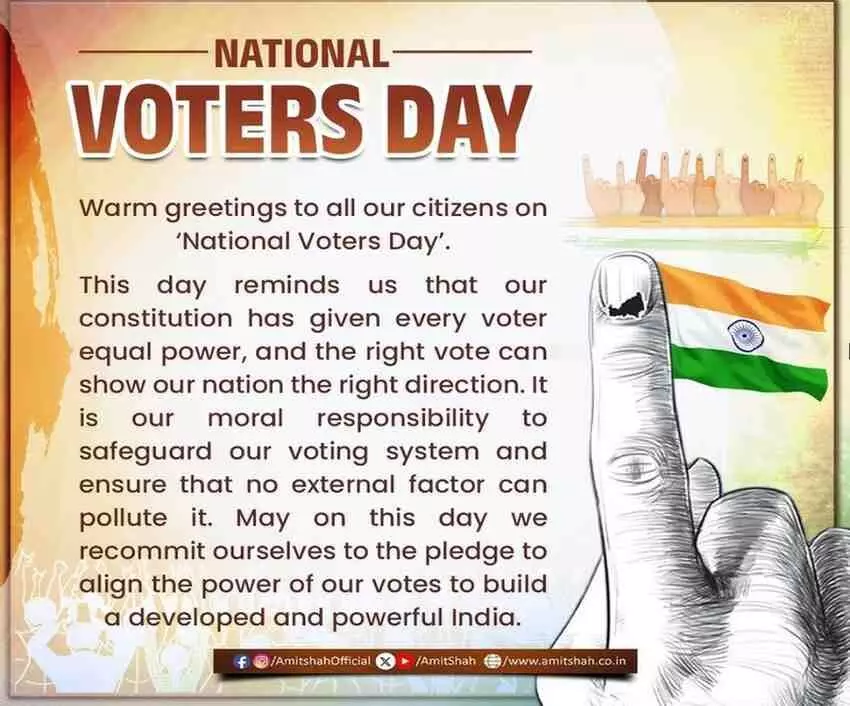 भारत ने मनाया 16वां राष्ट्रीय मतदाता दिवस! 'मेरा भारत, मेरा वोट' थीम के साथ राष्ट्रपति मुर्मू ने नई दिल्ली में युवा मतदाताओं को किया सम्मानित। निर्वाचन आयोग ने बिहार चुनाव की सफलता पर विशेष प्रकाशन जारी किए और देशभर में साइकिल रैलियों के जरिए मतदान जागरूकता फैलाई। जानिए कैसे युवा शक्ति बन रही है भारतीय लोकतंत्र का नया आधार।