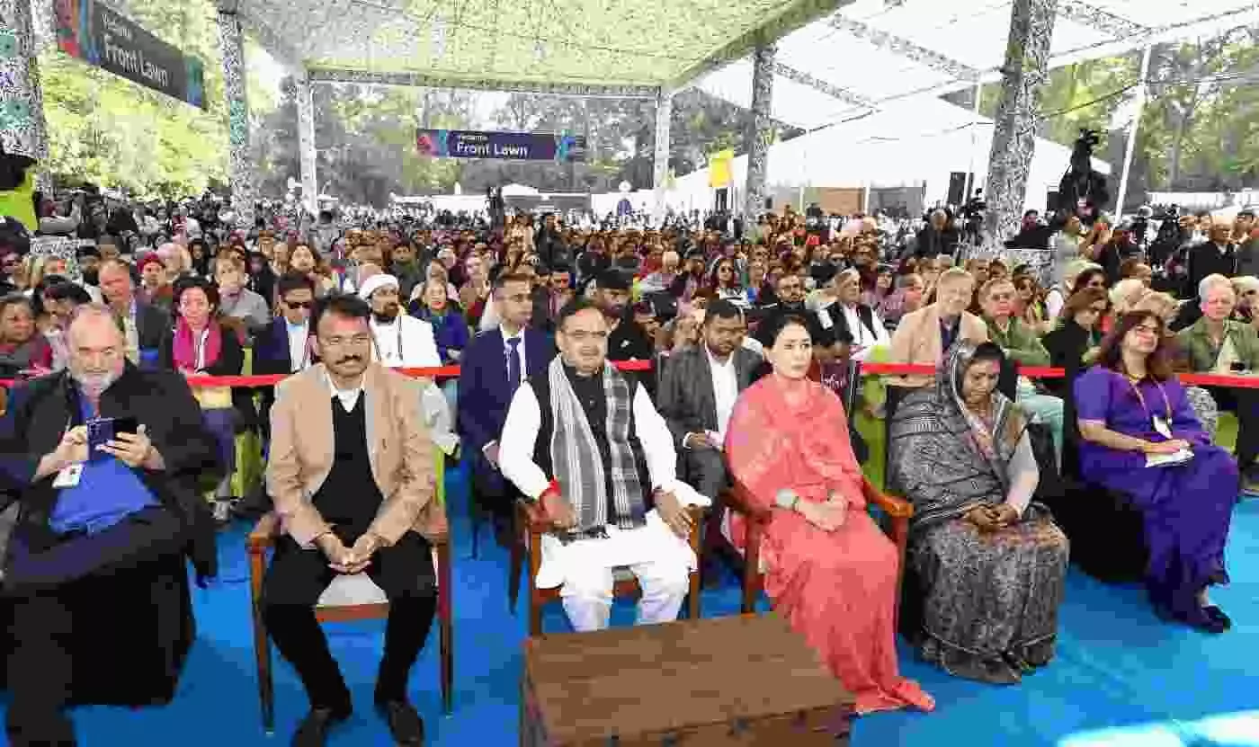 जयपुर लिटरेचर फेस्टिवल 2026 का मुख्यमंत्री भजनलाल शर्मा ने किया भव्य उद्घाटन। राजस्थान की सांस्कृतिक विरासत को संजोने और साहित्य को जीवन का हिस्सा बनाने के संकल्प के साथ शुरू हुआ दुनिया का सबसे बड़ा साहित्यिक उत्सव। उपमुख्यमंत्री दिया कुमारी और नमिता गोखले सहित दिग्गज हस्तियों की मौजूदगी में गूँजी वीरगाथाएं और ज्ञान की चर्चा। पूरी रिपोर्ट यहाँ पढ़ें।