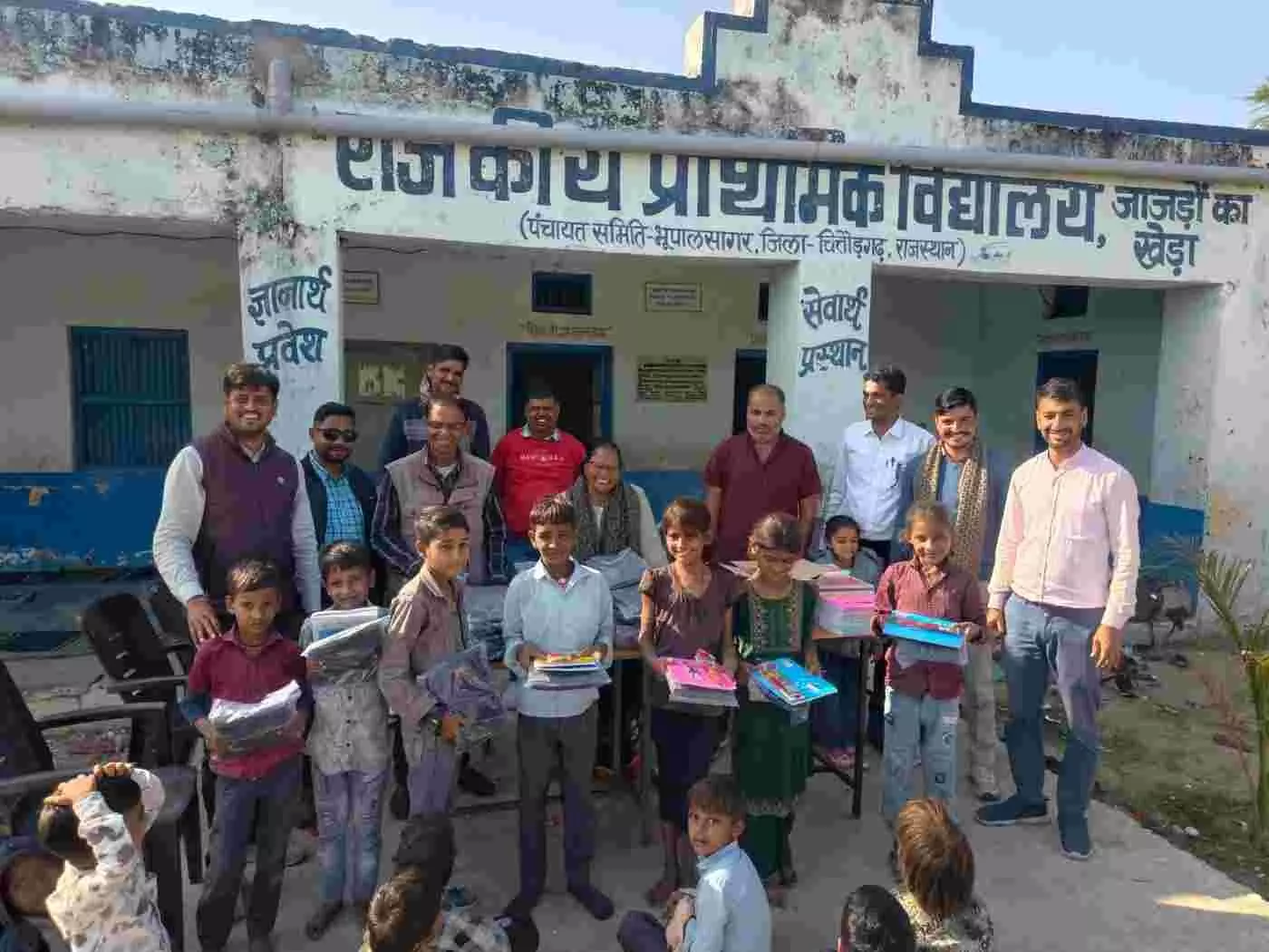 चित्तौड़गढ़ के जाजड़ों का खेड़ा विद्यालय में शिक्षकों ने पेश की मानवता की मिसाल! मकर संक्रांति पर प्रधानाध्यापक मधु सालवी और शिक्षकों ने निजी खर्च से 60 बच्चों को स्वेटर और स्टेशनरी बांटी। स्नेह भोज के साथ मनाया उत्सव। गुरुजनों के इस पुनीत कार्य ने क्षेत्र में जीती सबका दिल। पढ़िए पूरी रिपोर्ट।