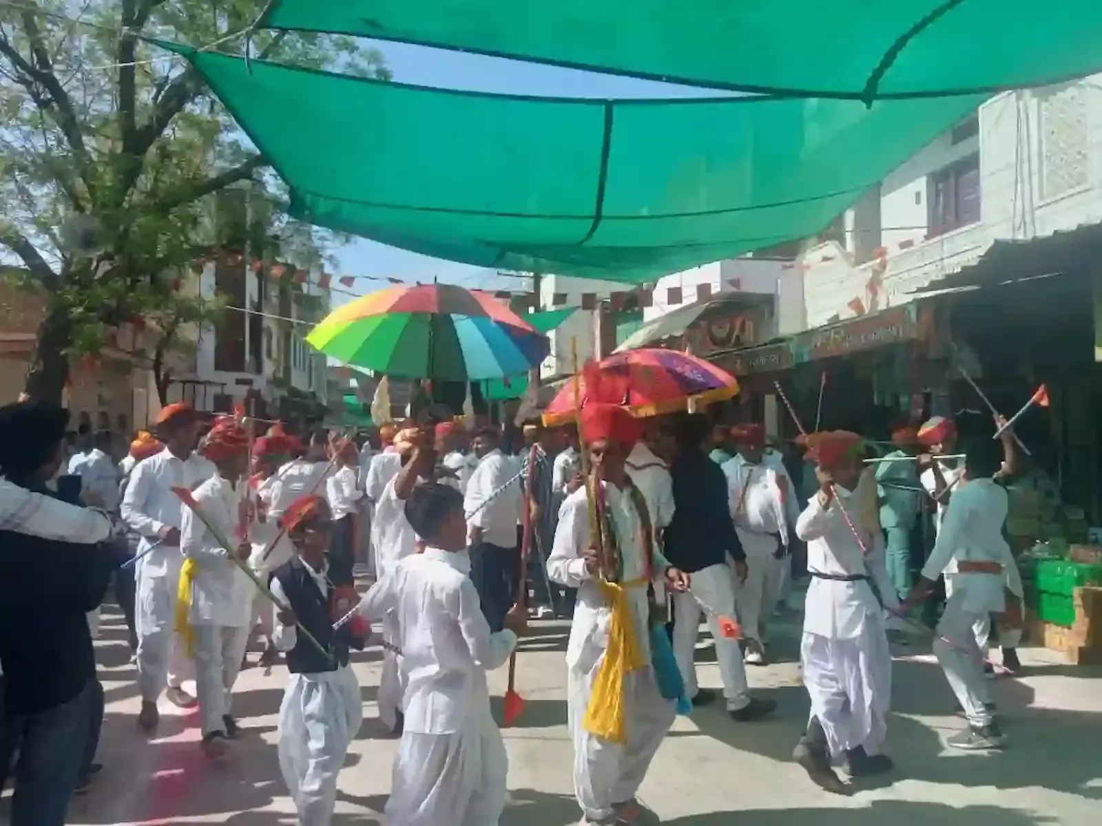 चैत्र कृष्ण पक्ष दशमी पर बेडच नदी पुलिया के पास भव्य भजन संध्या और हवन यज्ञ के साथ विधि-विधान से 27 फीट लंबा त्रिशूल और भगवा ध्वज स्थापित किया गया।
