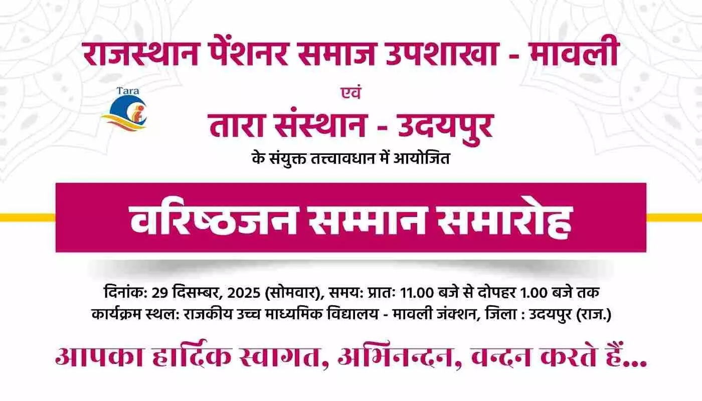 पेंशनर्स को मिलेगा सम्मान, मावली में 29 दिसंबर को भव्य समारोह का आयोजन
