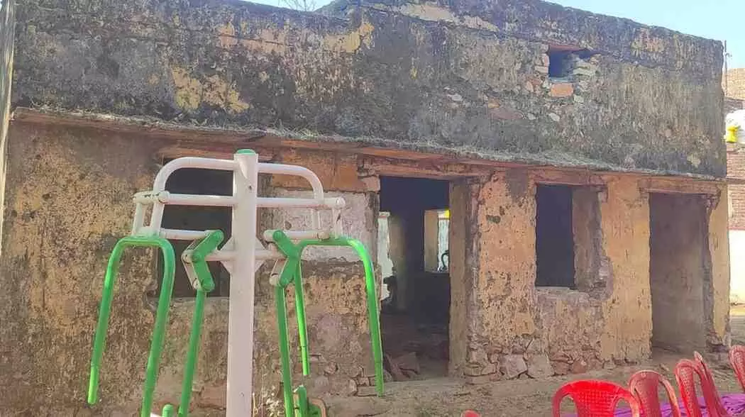 शहीद रमेश स्वामी पार्क में स्थित भवन की छत गिरने से टला हादसा, ग्रामीणों ने सुरक्षा के दृष्टिगत भवन को जमींदोज करने की मांग की।