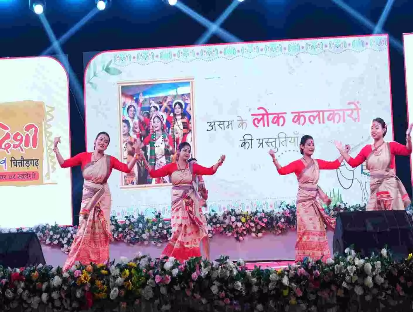 चित्तौड़गढ़ में राष्ट्रीय स्वदेशी महोत्सव के दौरान असम के लोक कलाकारों ने बिहू, बोडो, हाजोंग और तीवा नृत्यों की मनमोहक प्रस्तुतियों से दर्शकों को मंत्रमुग्ध किया। ग्रुप लीडर जीना कुमारी के नेतृत्व में कलाकार दल ने असम की समृद्ध लोक संस्कृति, परंपराओं और जनजातीय जीवनशैली को प्रभावशाली ढंग से मंच पर सजीव किया।