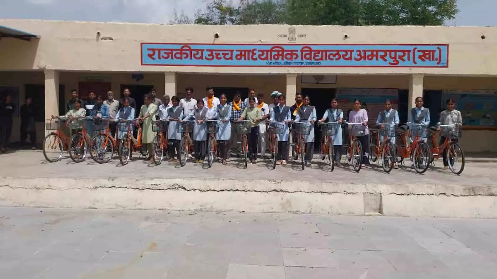 राजकीय उच्च माध्यमिक विद्यालय अमरपुरा खालसा में कक्षा 9वीं की छात्राओं को साइकिलें बांटी गईं, प्रधानाचार्य और स्थानीय जन प्रतिनिधियों ने किया योजना का शुभारंभ।