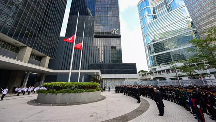 हांगकांग में राष्ट्रीय झंडे को आधा झुकाकर शोक जताया गया