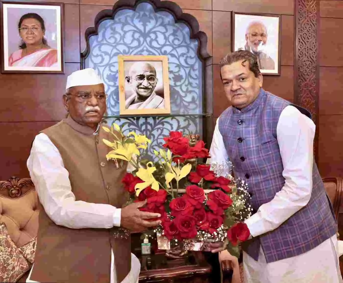 जयपुर के राजभवन में राज्यपाल हरिभाऊ बागडे से पूर्व विधायक धर्मनारायण जोशी और डॉ. विजय विप्लवी ने भेंट की। इस दौरान डॉ. विप्लवी ने डॉ. कुंजन आचार्य के साथ लिखित पुस्तक 'पत्रकार दीनदयाल उपाध्याय' राज्यपाल को भेंट की और उपाध्याय जी के जीवन दर्शन एवं आगामी साहित्य प्रकाशन पर गहन चर्चा की। इस अवसर पर समाजसेवी अशोक बाबेल भी मौजूद रहे।