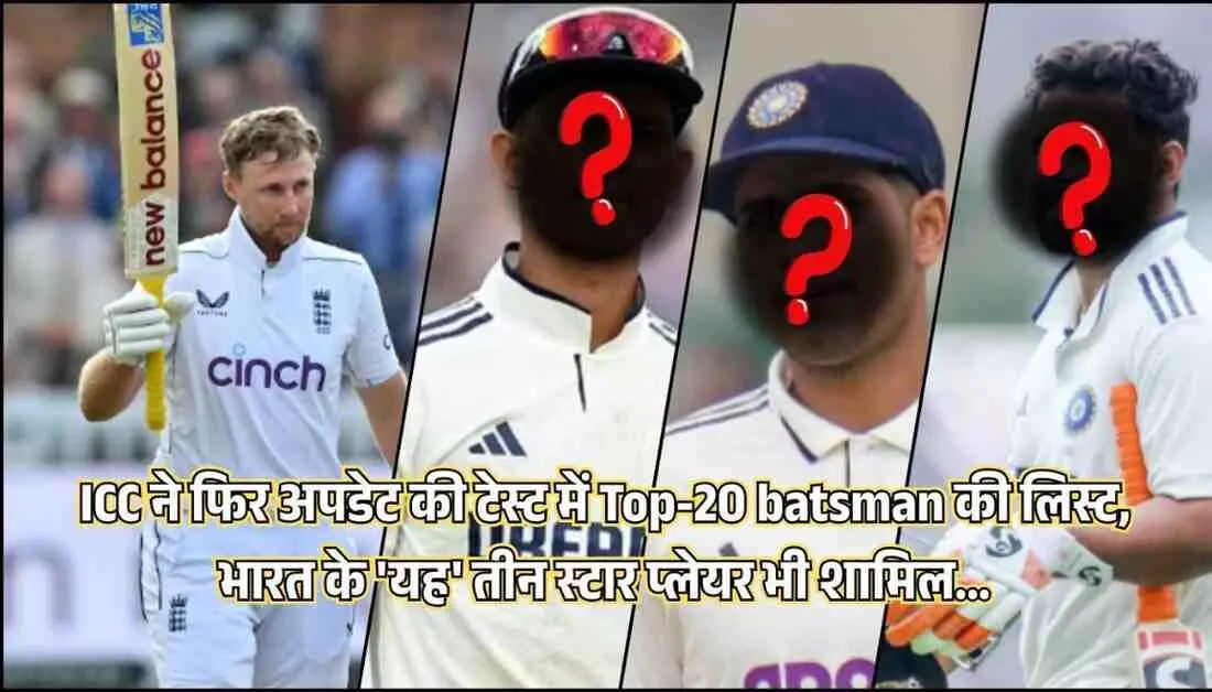 ICC ने टेस्ट बल्लेबाजों की ताजा रैंकिंग जारी की, जिसमें इंग्लैंड के जो रूट ने पहला स्थान बनाए रखा। भारत के तीन खिलाड़ी शामिल हैं: यशस्वी जायसवाल, शुभमन गिल और ऋषभ पंत। सूची में 20 शीर्ष बल्लेबाजों के नाम और रेटिंग शामिल, जो क्रिकेट प्रेमियों के लिए अहम अपडेट है।